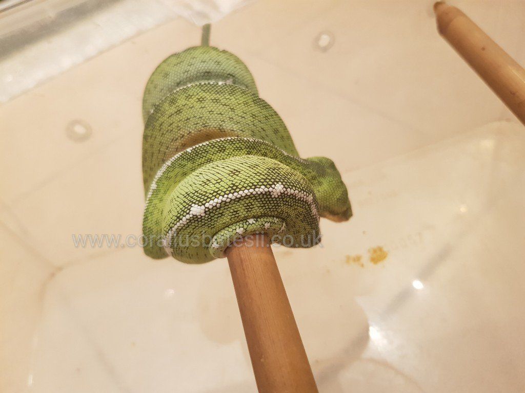 Within the photo gallery you can see some specimens from; Corallus Caninus (Emerald tree boa), Corallus Caninus (Anaconda phase Emerald tree boa) and Corallus Batesii (Amazon basin emerald tree boa).